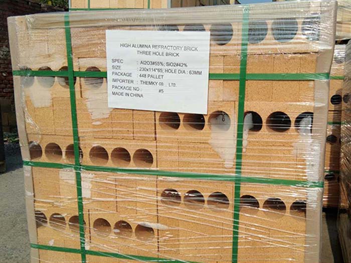 高鋁孔磚是三氧化二鋁(Al2O3)含量高于48%的硅酸鋁質(zhì)耐火材料制品。我國按照氧化鋁含量將高鋁耐火磚分為Ⅰ等──Al2O3含量>75%;Ⅱ等──Al2O3含量為 60~75%;Ⅲ等──Al2O3含量為48~60%。